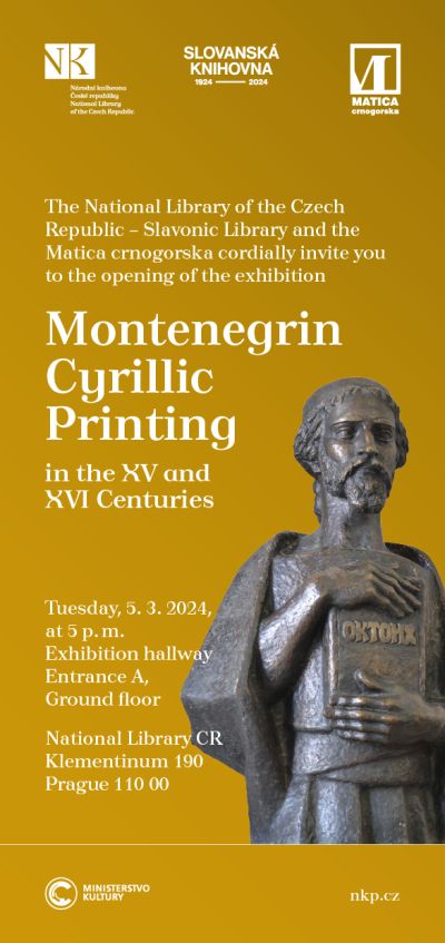 The exhibition was prepared by Matica crnogorska and has been organized in association with the Slavonic Library. Display panels with texts in Czech and English clearly present this significant initial period of Slavic book printing, its key personalities and their work. Thanks to many reproductions, a visitor can discover the most important works published in the printing offices mentioned above. Two titles – Psalter with Cantos (1495) printed by Ðurađ Crnojević and Festal Menalon (1538) by Božidar Vuković – are featured in the form of phototypical editions.
